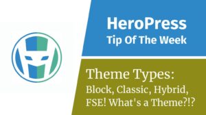 This week’s Tip of the Week is about about all the different kinds of WordPress themes there are these days. Block themes, Hybrid themes, Universal themes, Classic themes, and Full Site Editing!